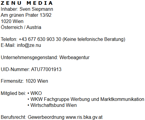 Informationspflicht gemäß §5 E-Commerce Gesetz, §14 Unternehmensgesetzbuch, §63 Gewerbeordnung und Offenlegungspflicht laut §24,25 Mediengesetz